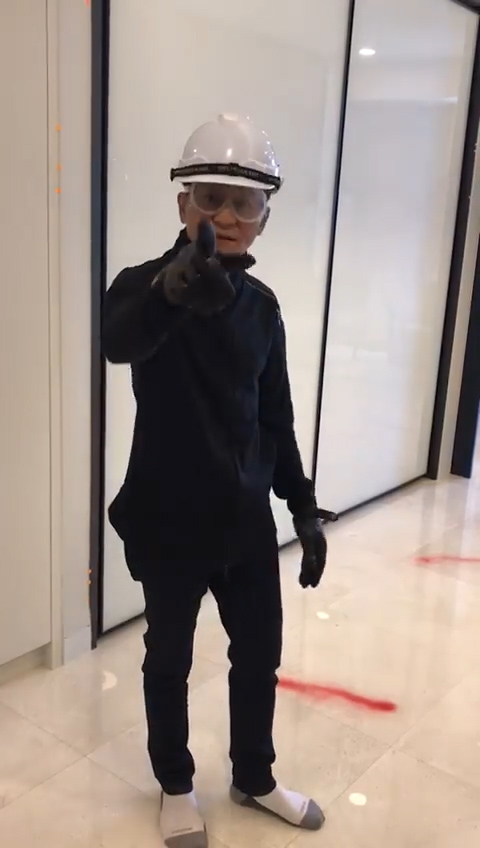 ▼哈哈,而且砸屋子之前还懂得换上保护装。
