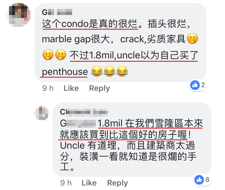 所以Uncle用了红漆来打叉他觉得不合理和接受不到的地方,他在影片里也表示会把这里作为展示厅让所有人都能前来观赏发展商承诺的所谓“豪华公寓”。
