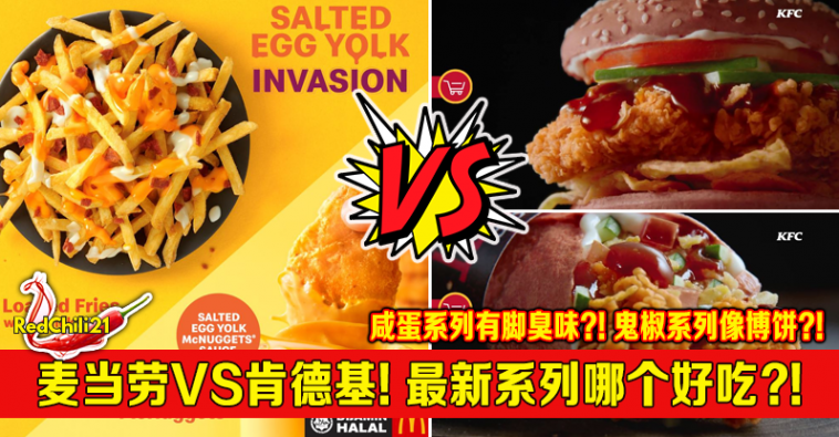 大马有一名网友就为此做了一段视频,他在视频里亲自试吃 McDonald’s 和 KFC 各推出的最新系列食品:McDonald’s 的咸蛋系列和 KFC 的 Ghost Pepper 系列,并对此给了评语和评价。