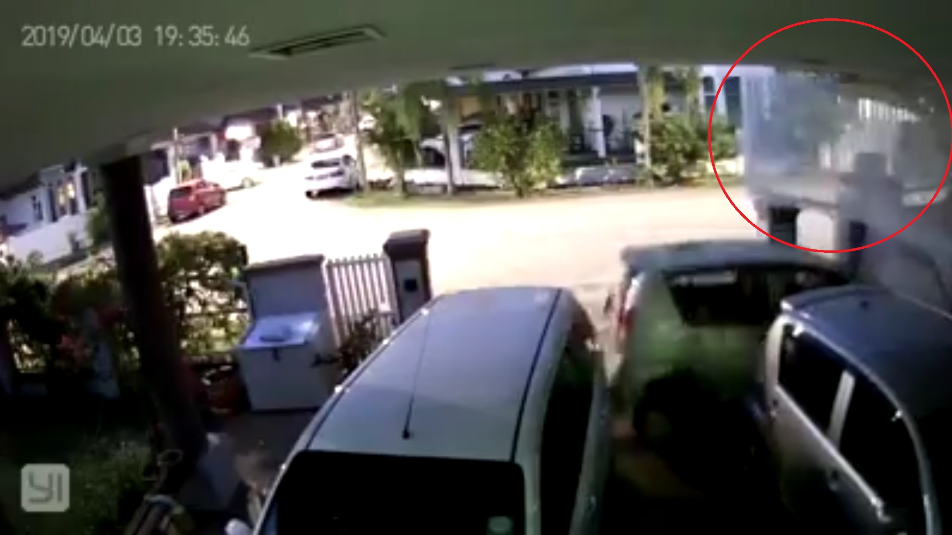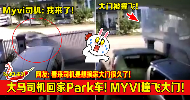 ▼ 速度之快,大马司机靠着他 “惊赞” 的 Park 车技术,准准的把车 Park 进家里。而且还把大门给撞飞了!