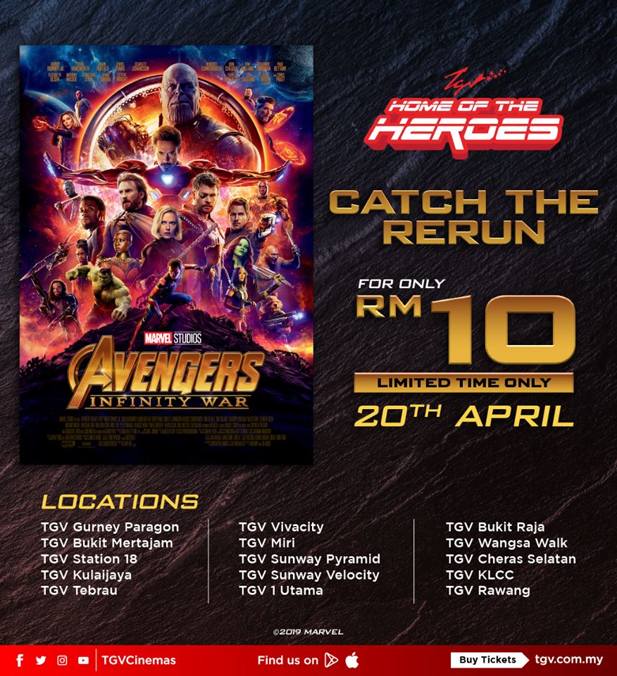 同一天,TGV 电影院也将在全马指定的 15 家分行,上映 Avengers: Infinity War !