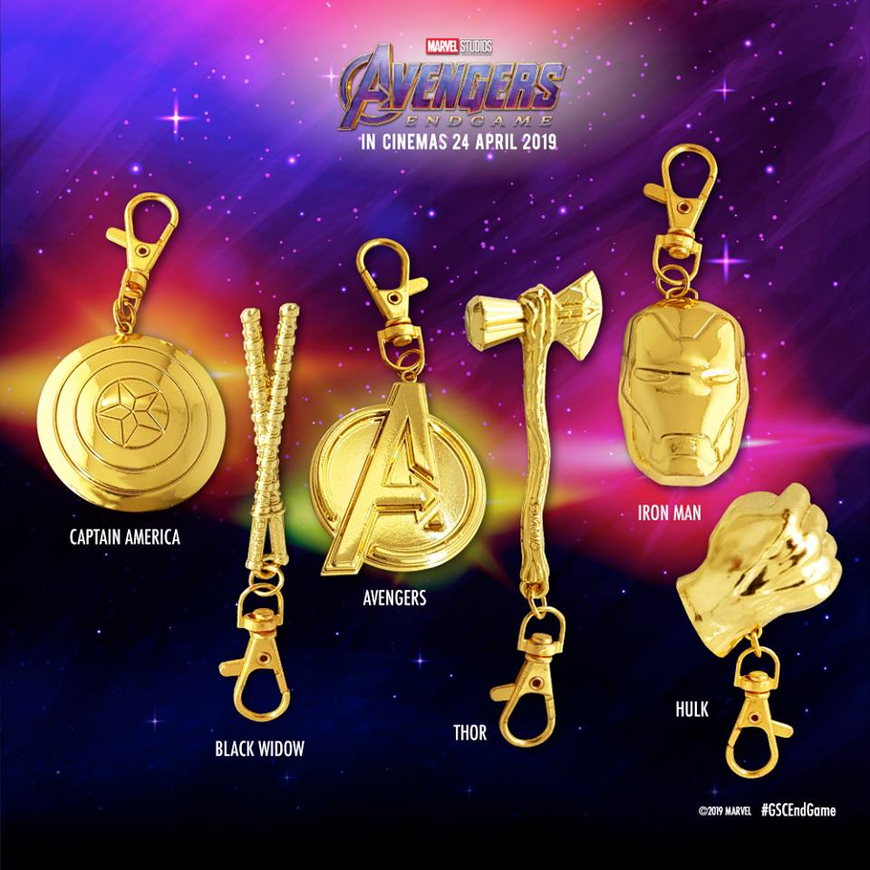 ▼ GSC 电影院为当日的首映场推出 6 款《Avengers: EndGame》金色钥匙圈。