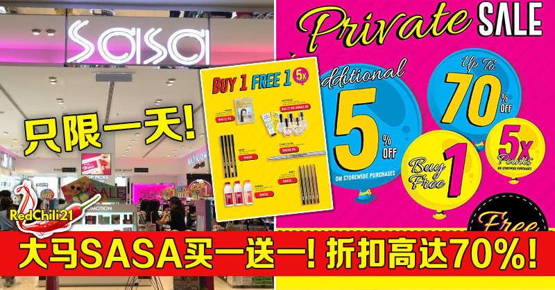 大马SASA一日大优惠!买一送一及折扣高达70%!