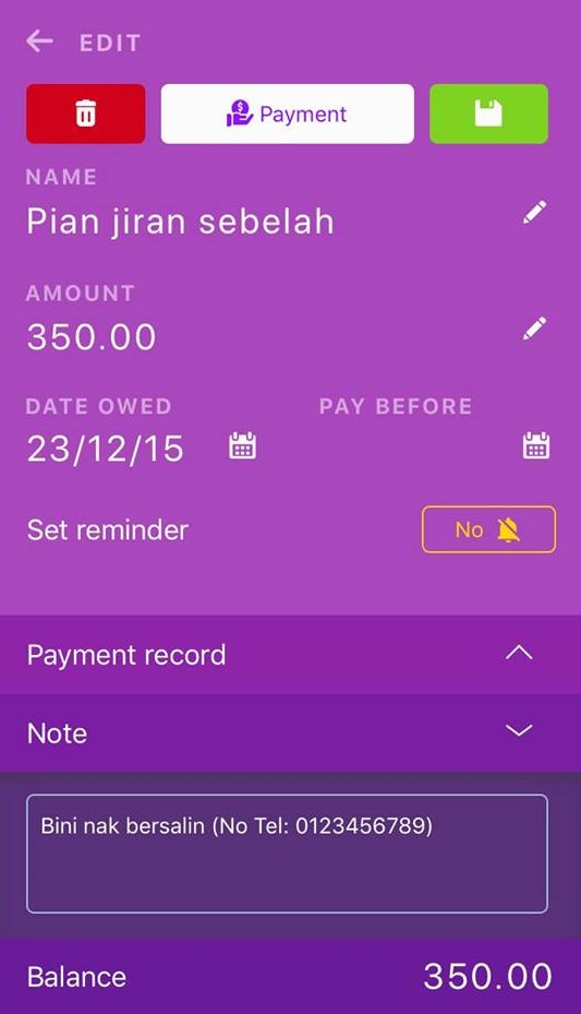 ▼ 这个app也可以让你添加notes,比如朋友说好还钱的日期,或者分期还款的数额等,成为借款凭据!