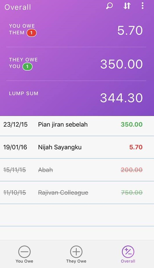 ▼ 不管是什么印度帐,在这里都看得一清二楚~再也不怕朋友“忘记”还你钱啦!