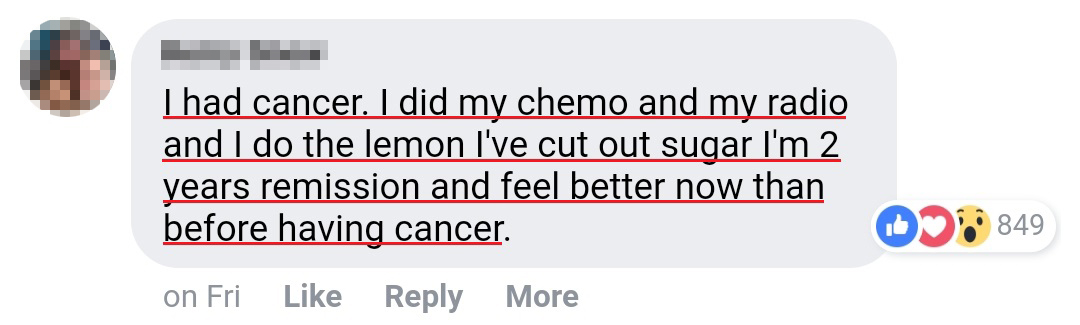 ▼ 患癌症的网友在留言板上分享她喝热柠檬水的经历,现在身体竟然比生病前还健康了!