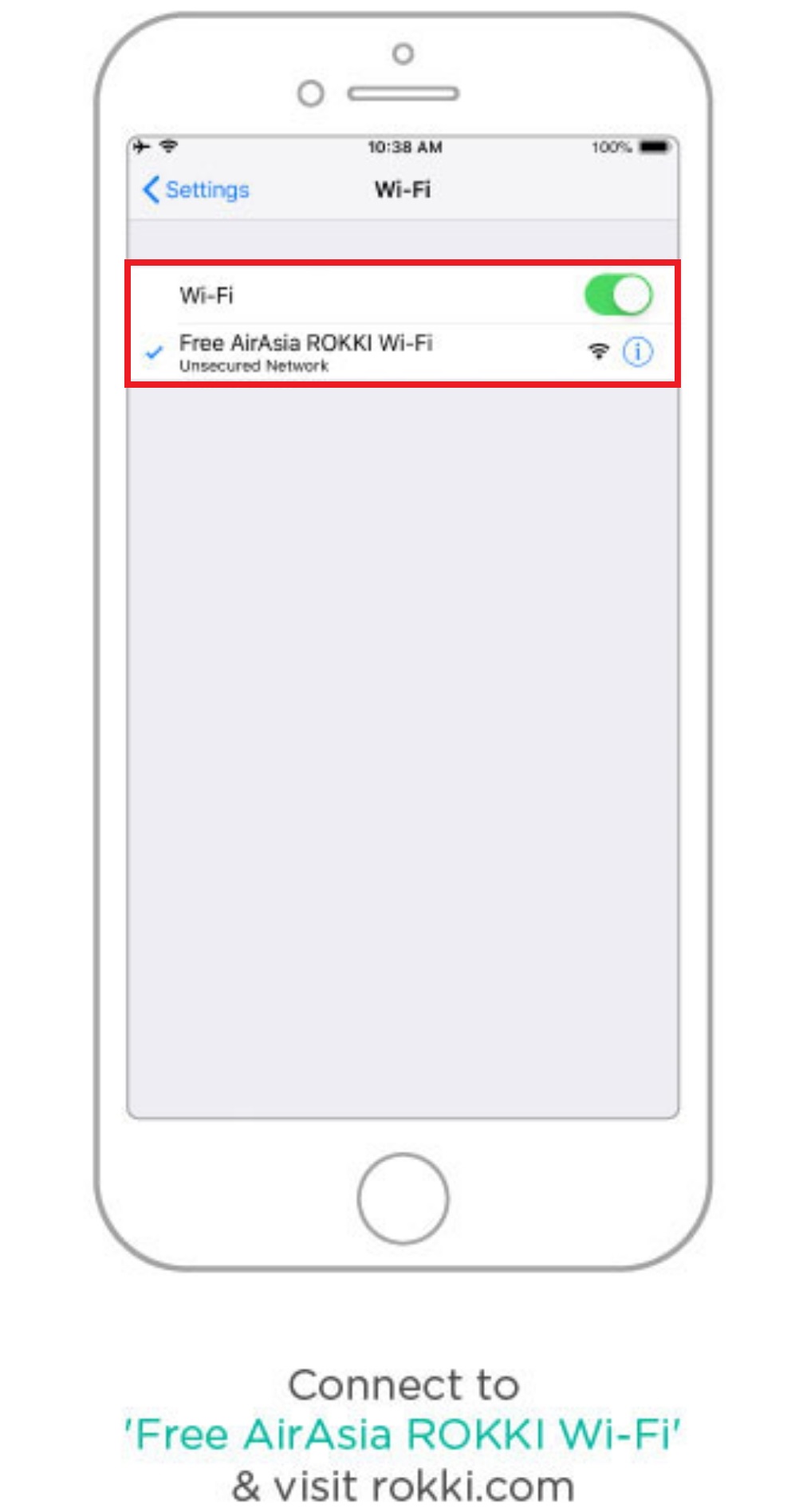 ▼ Step 1:打开手机的Wi-Fi,连接 Free AirAsia ROKKI Wi-Fi 。