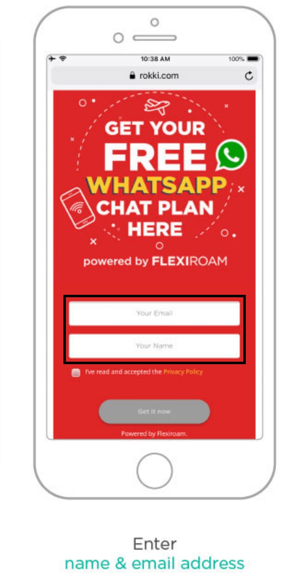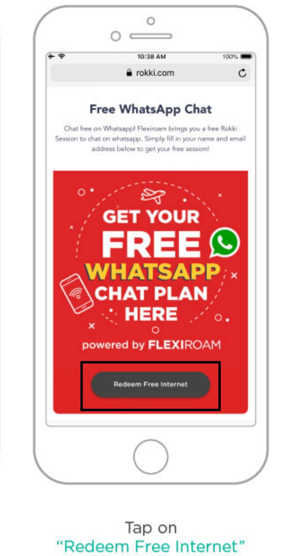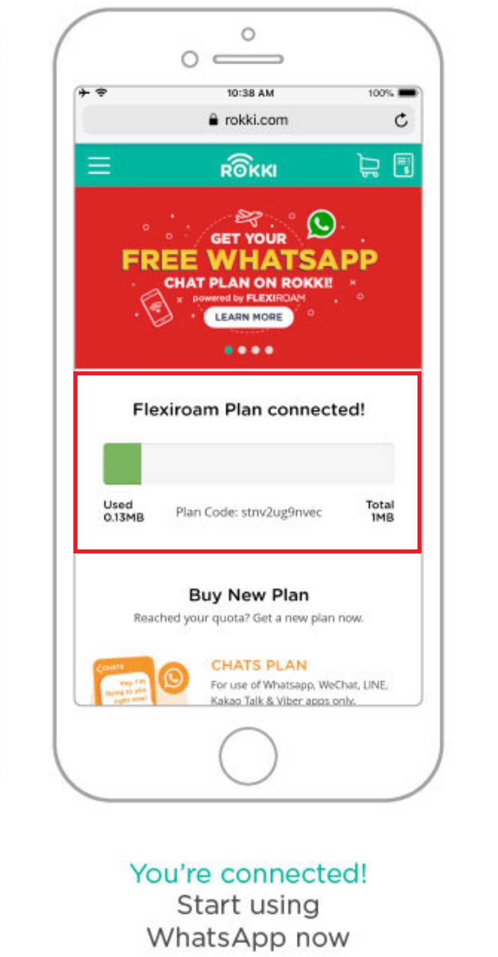 ▼ Step 2:浏览 rokki.com 以后,点击Get Your Free WhatsApp Chatplan 。