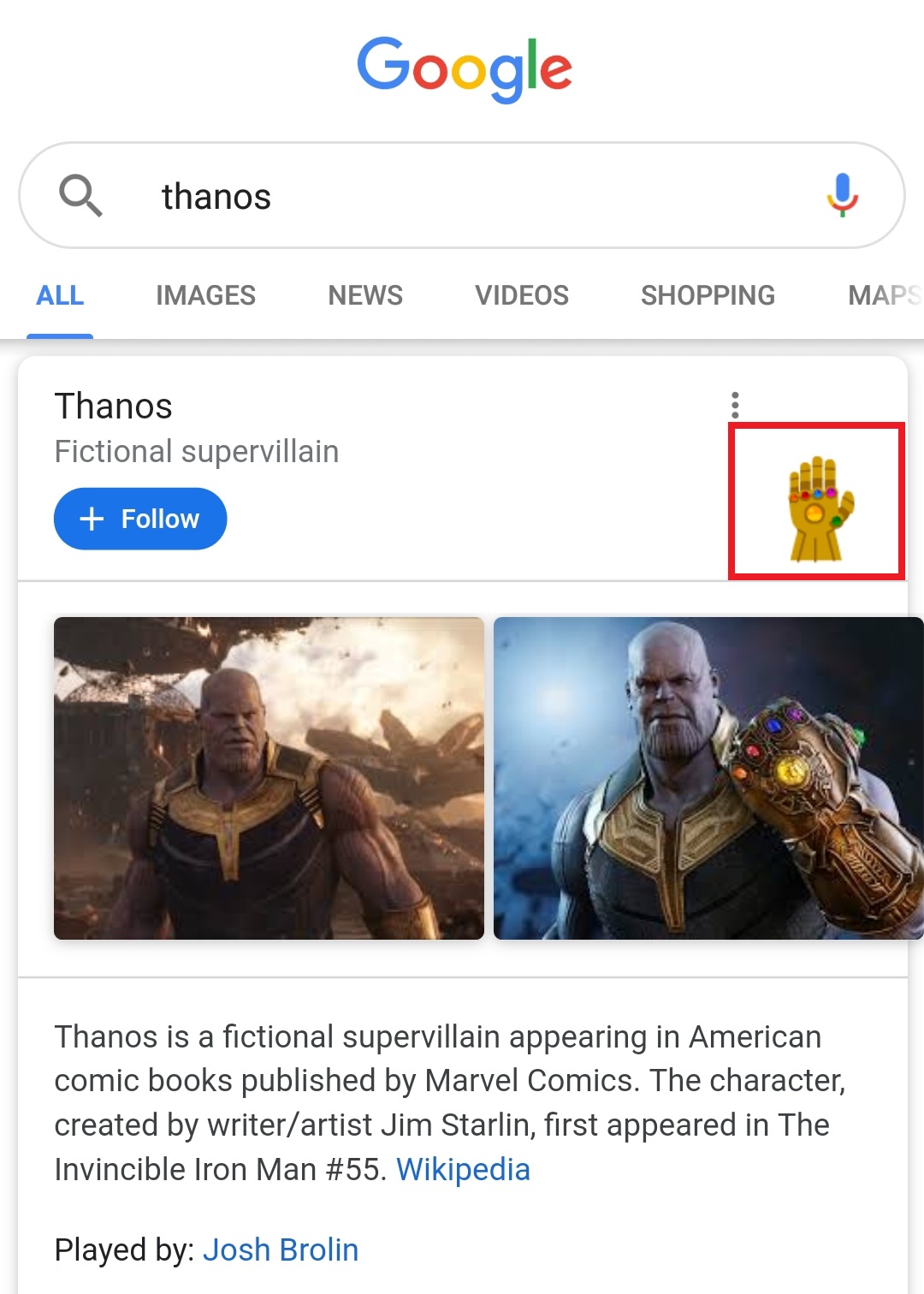 ▼ Step 2:搜寻以后,点击 Thanos 的 “无限手套” 。
