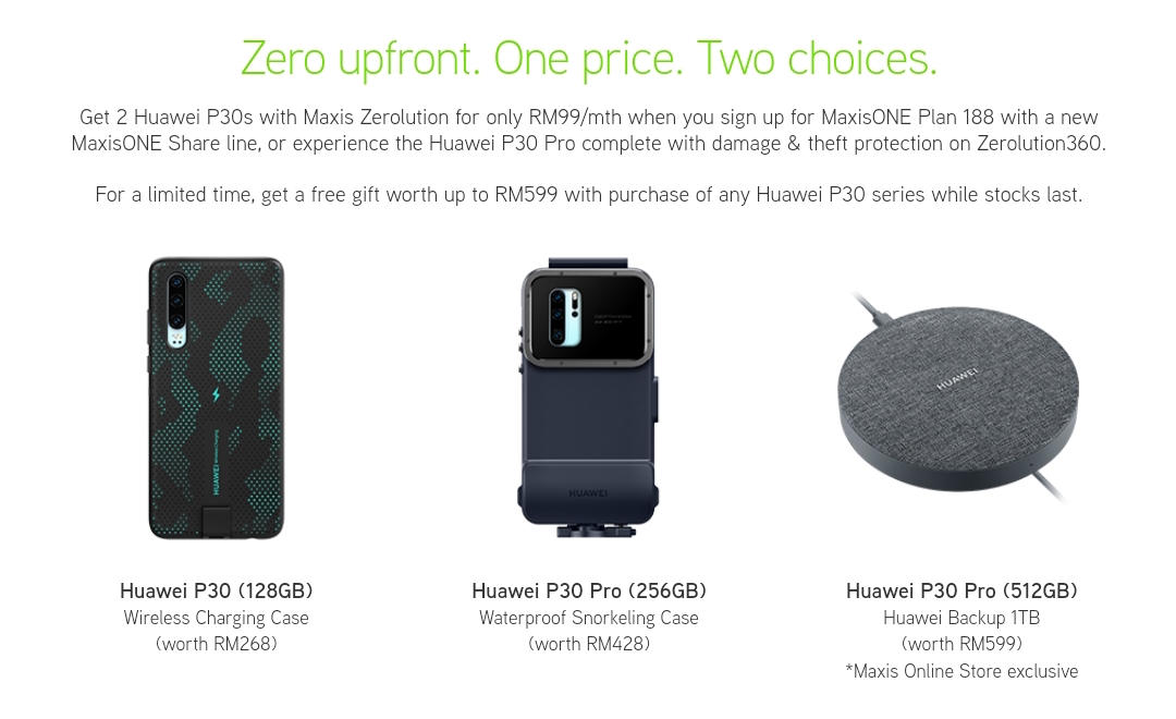 ③ Huawei P30 Pro(512GB)- 送 Huawei Backup 1TB(价值 RM599)(只限 Maxis 官方网店)