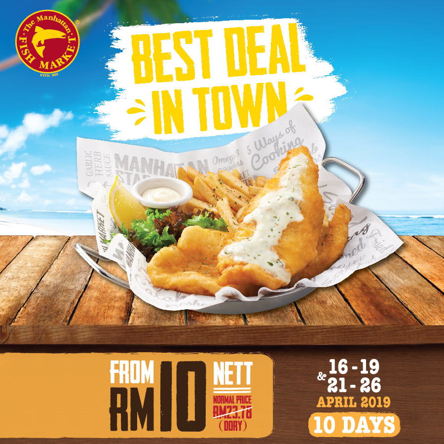 The Manhattan FISH MARKET 将在这个月内的其中 10 天推出特别优惠,各种 Fish ‘N Chips 都很便宜,最低只需 RM10 !