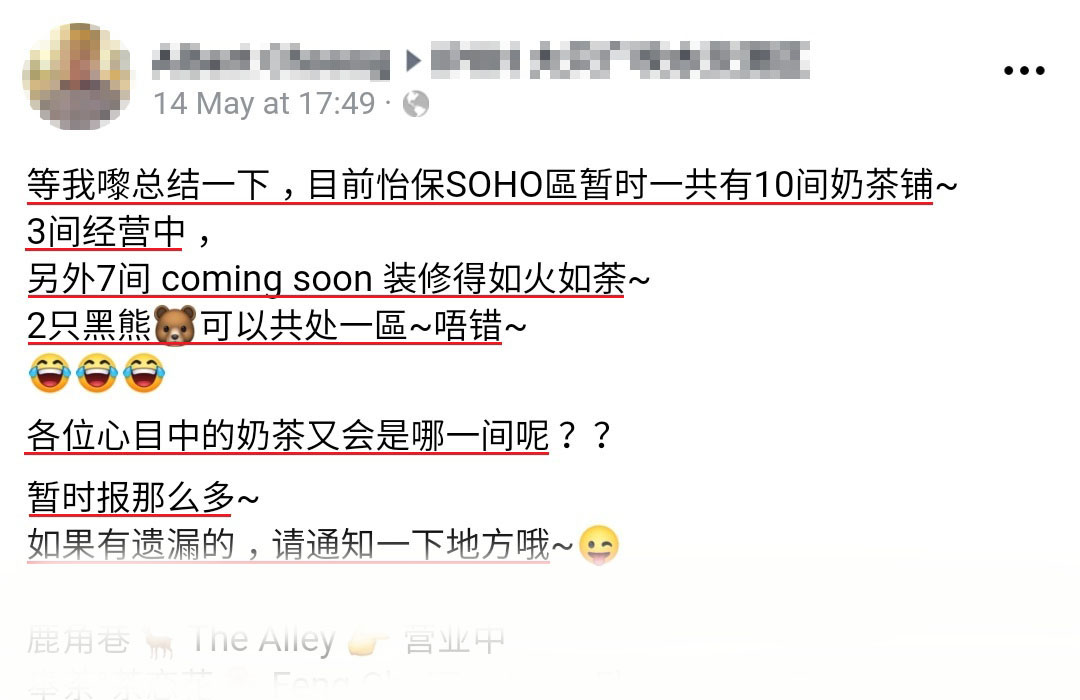 等我嚟总结一下,目前怡保SOHO区暂时一共有10间奶茶铺~