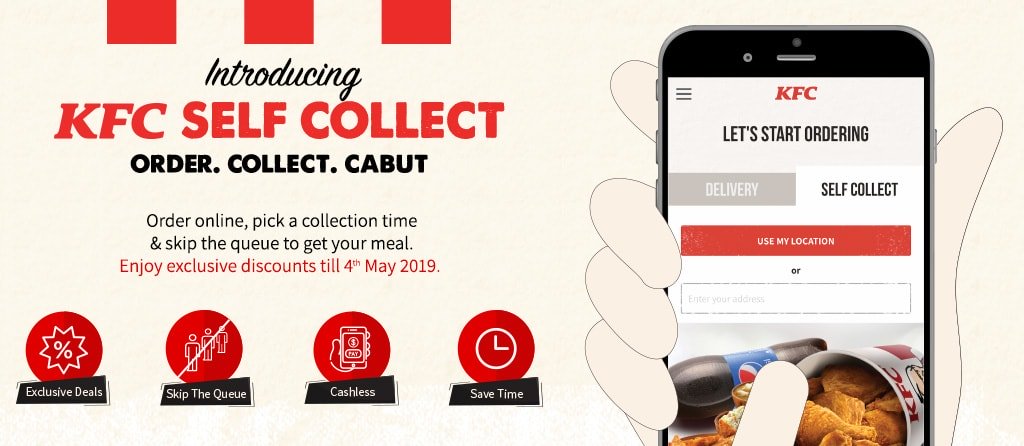 ▼ 此外,即日起 KFC 还推出了 Self Collect 的优惠!只需在注册成为 KFC 的会员以后,透过 KFC 的 APP 或 KFC 官网订购,并亲临附近的 KFC 去领取就可以啦!