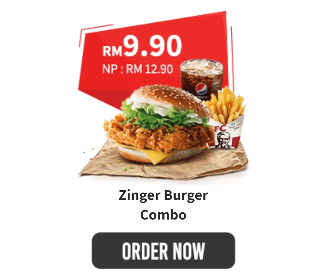 ▼ ③ Zinger Burger Combo(原价 RM12.90)- RM9.90