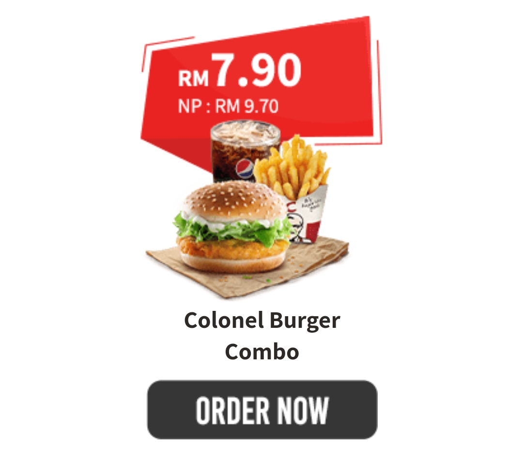 ▼ ① Colonel Burger Combo(原价 RM9.70) – RM7.90