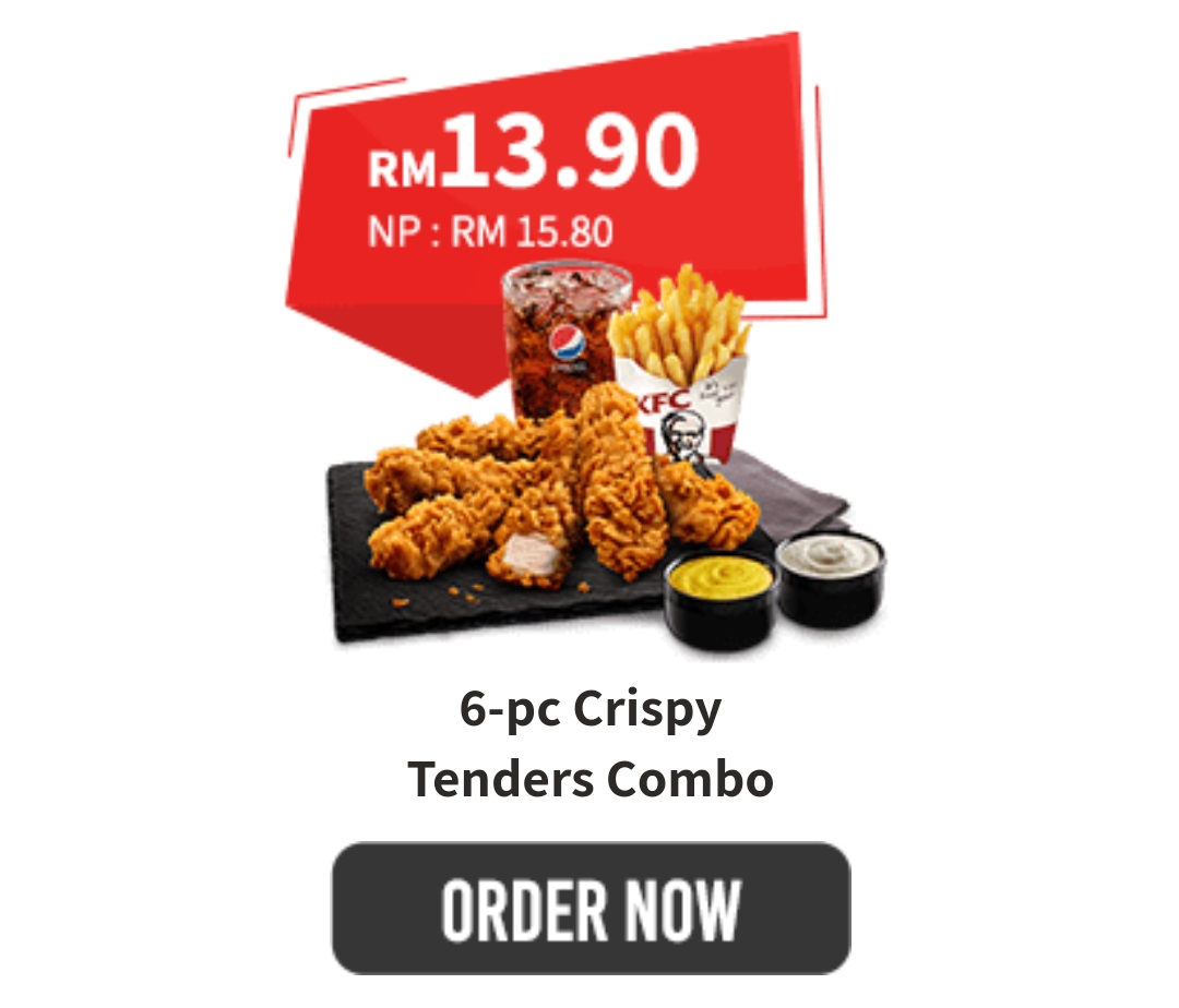 ▼ ⑤ 6-pc Crispy Tenders Combo(原价 RM15.80)- RM13.90