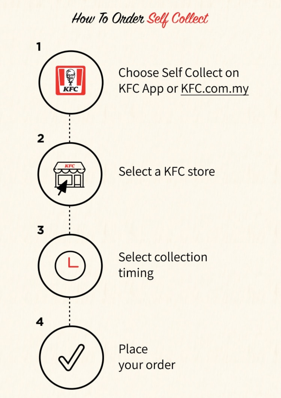 - 目前只有指定的 KFC 分行提供 Self Collect 服务。