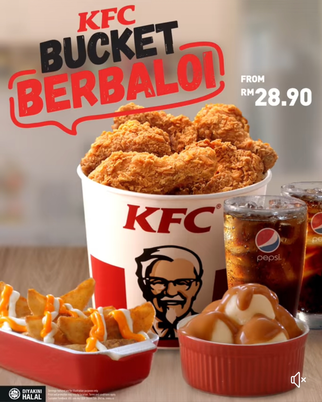 ▼ 如果你嫌 Chicken Popcorn 太少吃不饱,KFC同时还推出了 Bucket Berbaloi!