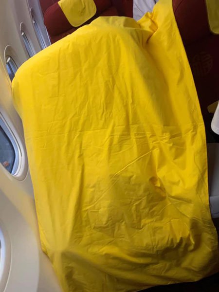 日前有一个程搭中国某航空公司的商务舱乘客爆料,有一名空姐在她睡着时贴心的帮忙盖上了一块黄色棉被,但是却让坐在印着福字的红色椅子上的她瞬间吓醒,“感觉我要被推去烧了!”。