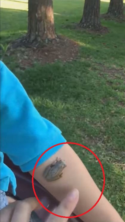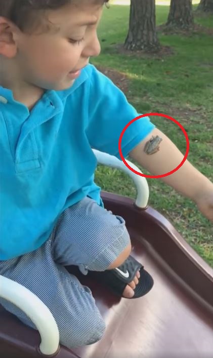 ▼ 现在大家可以看看小男童的青蛙惊险之旅!
