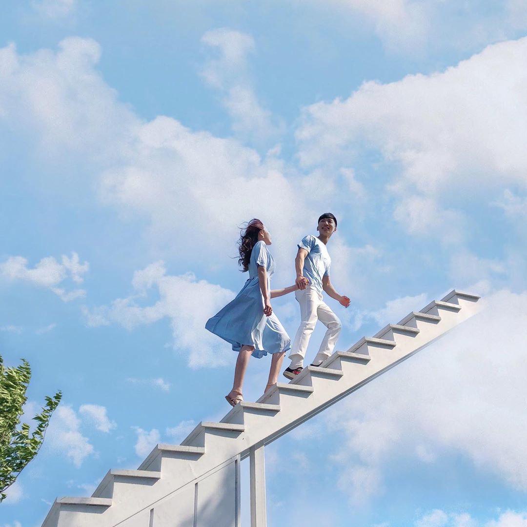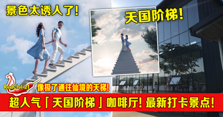咖啡厅在室外建立了一条延伸到半空中的纯白阶梯,远远的望去仿佛就像是通往仙境的天梯一般,好梦幻啊!此景点吸引了大批游客拍照打卡。