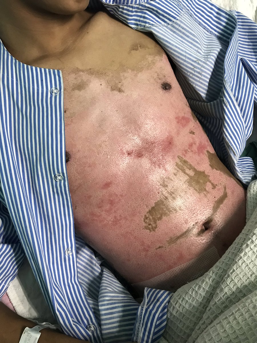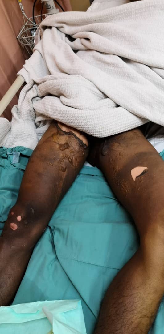 ▼ 双脚二级灼伤,几天内就连续开了两次皮肤移植手术!
