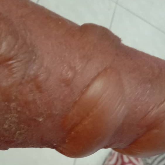 ▼ 妈妈的手被灼伤的四天后,开始严重起水泡!