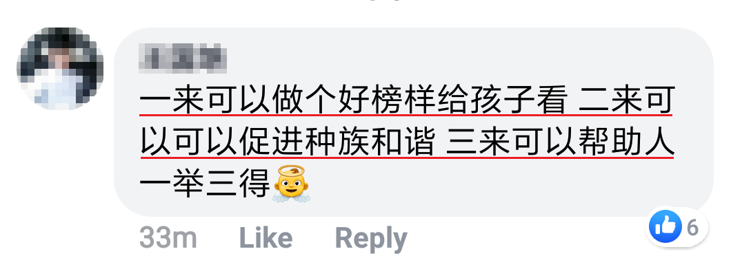 ▼ 「可以做好榜样给孩子看还可以促进种族和谐也可以帮助他人!」