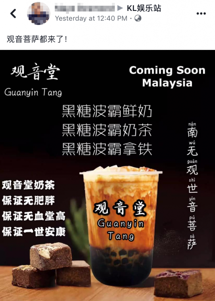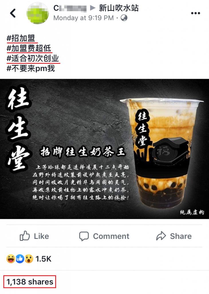 ▼数日前,一名网友在新山吹水站招人加盟全新品牌奶茶店《往生堂》!