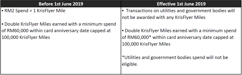 – 6月后:所有水电费(Utilities)与政府部门(Government Bodies)的消费将不会得到KrisFlyer Mile分数。