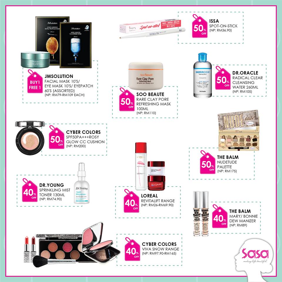 ▼ 接下来,是全马SASA各大分行的大优惠!最高优惠高达50%的折扣!其中著名韩国面膜JMSOLUTION更是买一送一呢!