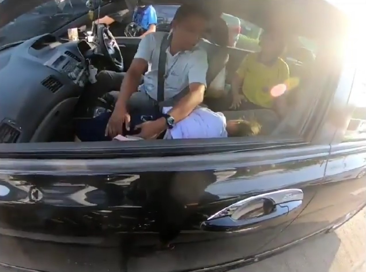 原来车内的司机索拉查(Sorachat Sadudee)当天到学校去接 2 名女儿放学时,看到 8 岁的小女儿凯摩(Kaimook)头晕、口吐白沫疑似中毒。爸爸发现不妙立刻送她去医院,但路上却遇到大塞车,心急的爸爸和其他家人在车内一直叫女儿别睡着。