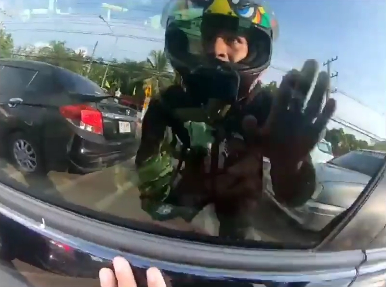 事发当天下午,摩哆骑士伊提彭(Itthiphon Petchphibunpong)骑着他的摩哆,经过一条正处于交通堵塞的大路。