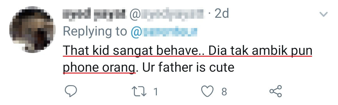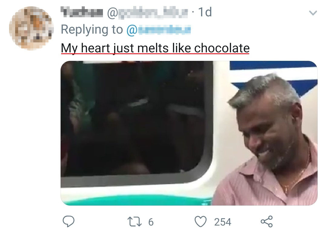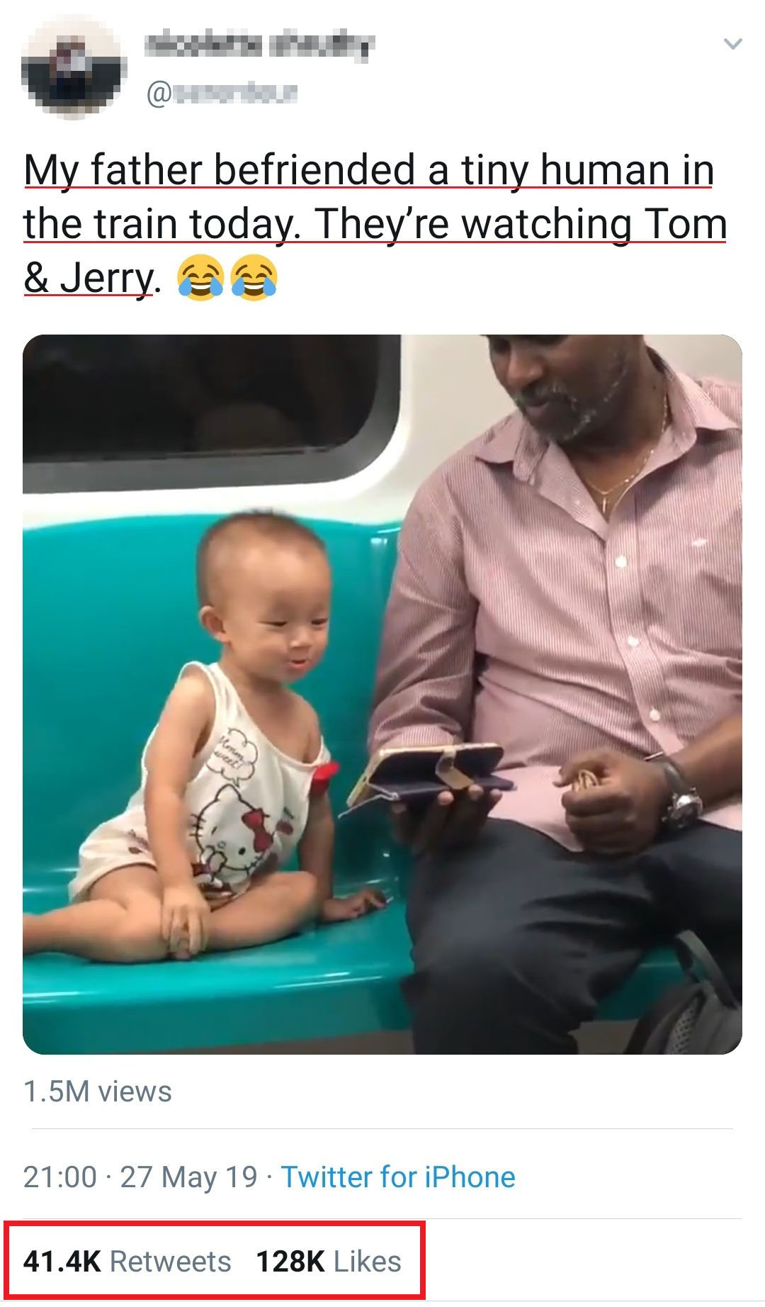 据《Mothership》报道,大叔的女儿表示:「小女孩和妈妈二人上了捷运后,就坐在我爸爸的旁边。小女孩很活泼但看似有些不安,所以我爸就拿起他的手机播放《猫和老鼠》给小女孩看,小女孩的妈妈也相当友善!」