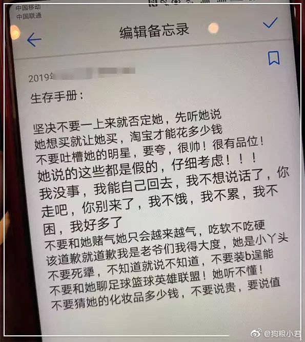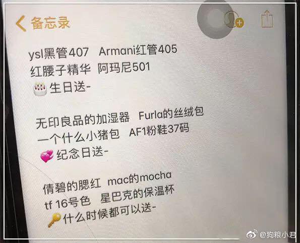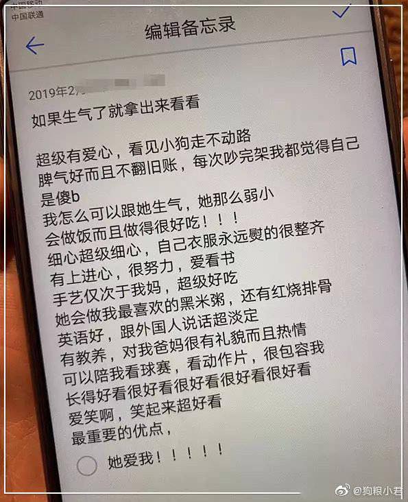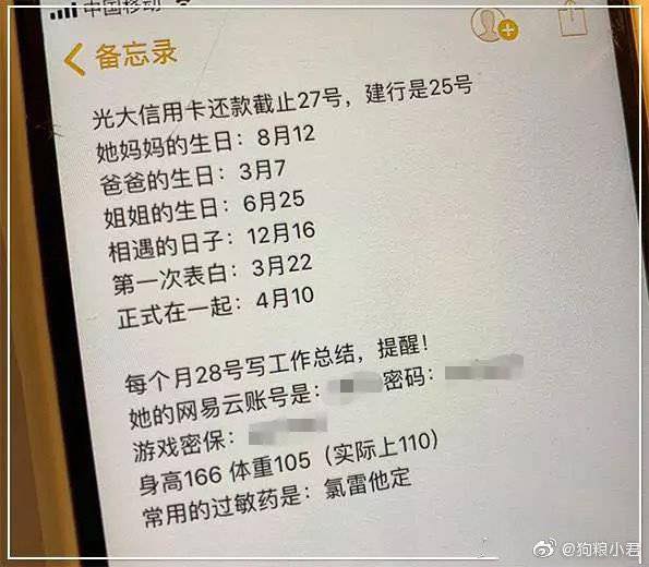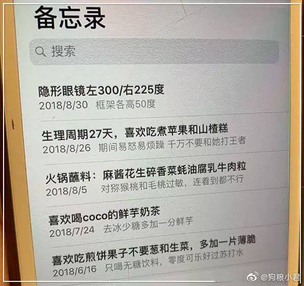 日前网上流传一组照片,照片所看到的是一名男友的手机备忘录。为什么会引起网友们的热烈反应呢?因为备忘录全是关于女友!