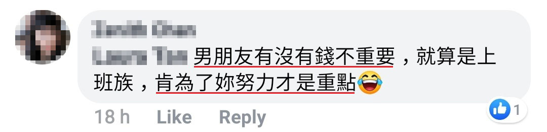 ▼ 这个留言说得很棒!「男朋友有没有钱不重要,愿意为你而努力才是重要!」