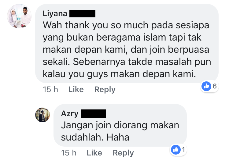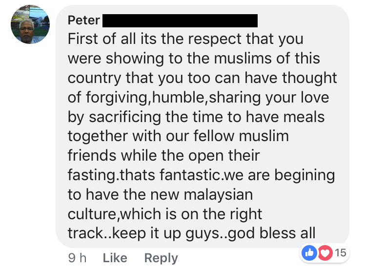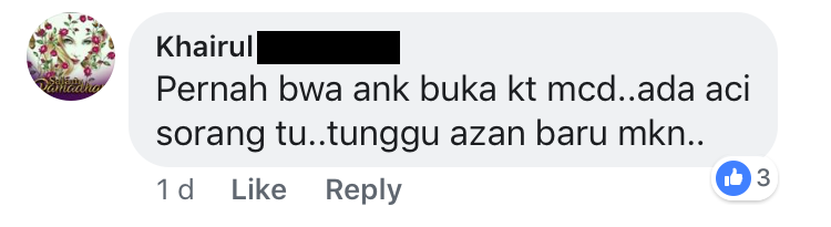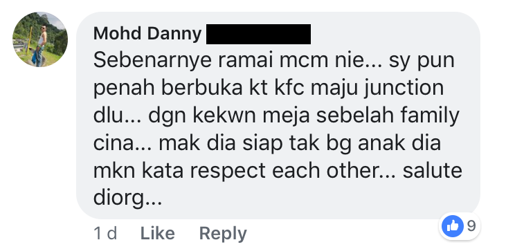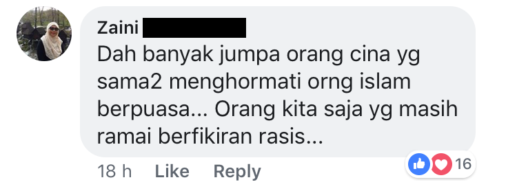 ▼Mohd Danny: 其实很多华人都是这样,我刚才在肯德鸡准备开斋的时候,隔壁座的一位妈妈向孩子表示要互相尊重所以不让她的孩子开动。真的让人敬佩!