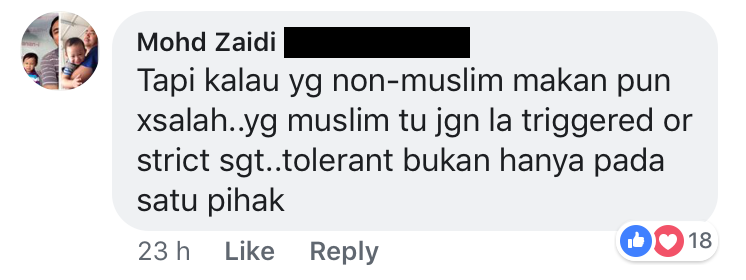 ▼Mohd Zaidi: 但如果非穆斯林在我们面前开动也没错的,穆斯林们不要那么极端因为宽容不是单方面的。