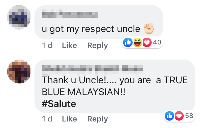 ▼马来同胞看到这个帖文后都纷纷留言赞美这位Uncle。