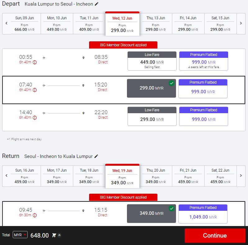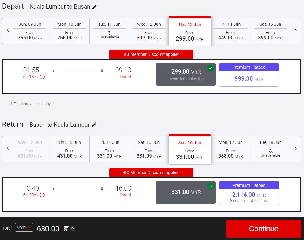 ▼ 吉隆坡到釜山的航线,单程价格也需RM299!来回机票RM630~