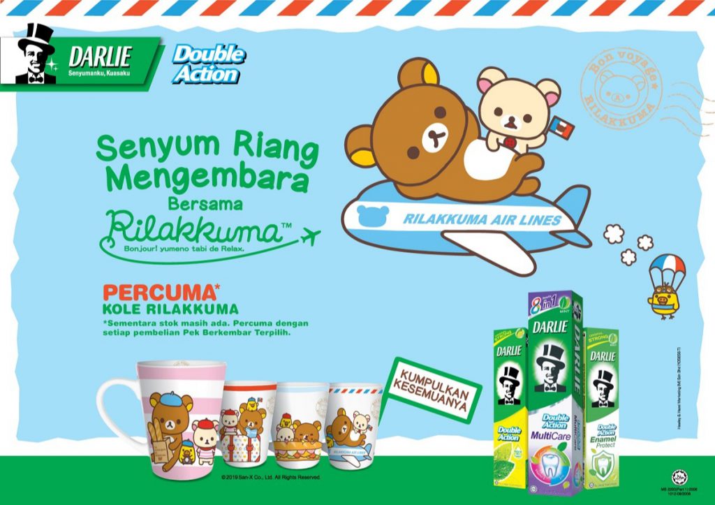各位旅人请注意,您乘搭的Rilakkuma航空已开始登机,此次航班将飞往快乐之国。凡在Lazada购买特定Darlie牙膏配套,即免费获赠Go Travel 杯子。