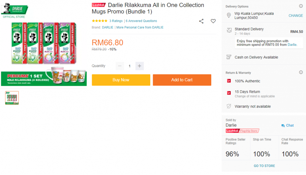 1. Darlie Rilakkuma All in One Collection Mugs Promo (Bundle 1) RM66.80