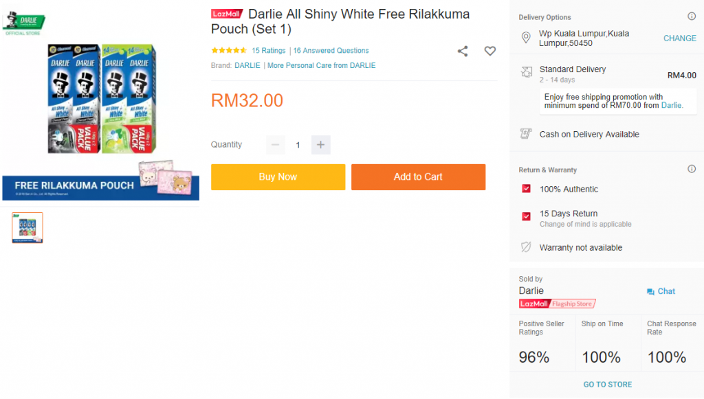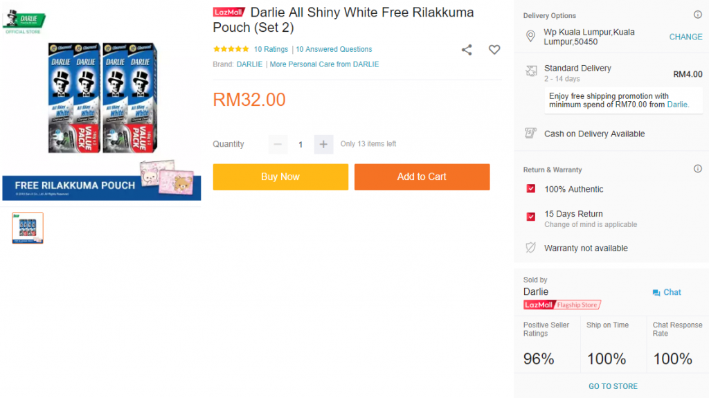 此外,这次在Lazada的Darlie官方店购买特定Darlie牙膏配套, 即能免费*获取Rilakkuma迷你袋。