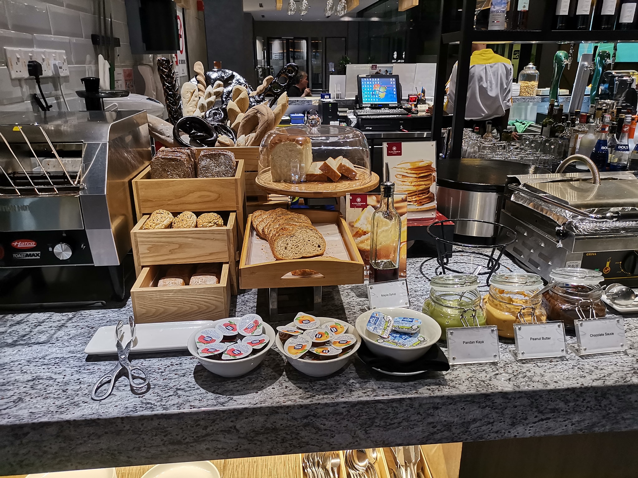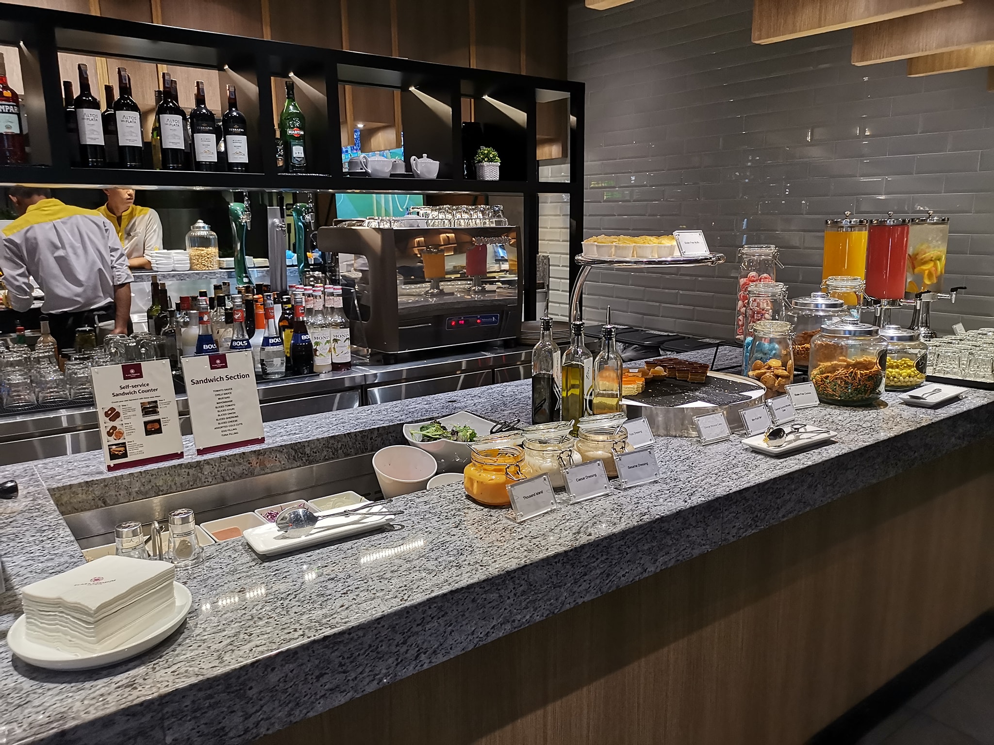 里面有厕所,外面有bar还有65寸电视?可以看(踢足球等)其实还有可以洗澡?的,可是在另外的lounge。如果要进去,不知道同样的qr code还需不需要scan过,或者再进入就算第二次的次数。比如说,吃了,出去,然后去另外的lounge要不要再扫码就不知道(我认为是算第二次的入门次数,因为是属于不一样的lounge),但是因为时间关系,没有去试了。