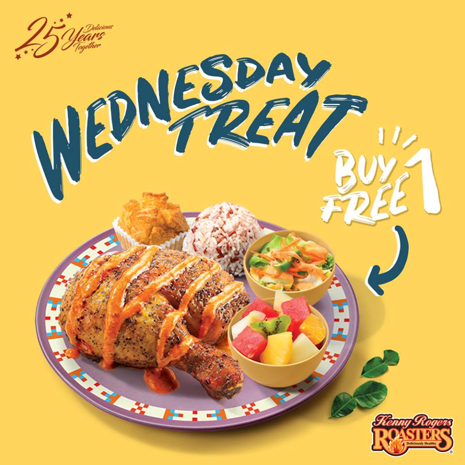 吃货们又有口福咯!即日起,Kenny Rogers Roasters 套餐买一送一!只限五月的星期三哦!