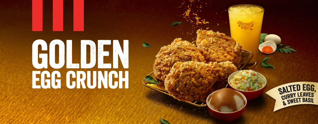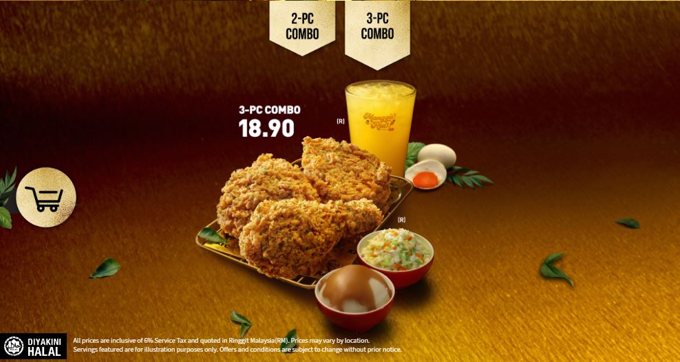 - 3-PC combo包括三块Golden Egg Crunch,一个薯泥(R),一个coleslaw(R)还有一杯饮料(R)。