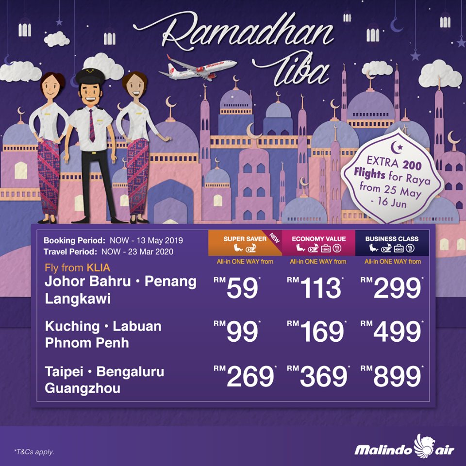 配合斋戒月的到来,Malindo Air的超值机票大促销又来啦~无论是国际或是国内航班都超便宜的勒!而且最低只需RM59!!