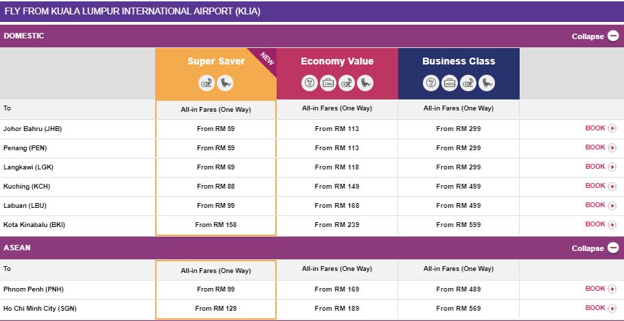 你们看!凡是从吉隆坡飞往柔佛、槟城或浮罗交怡最低只需 RM59!而飞往古晋、纳闽或金边只需 RM99 起。飞往台北、班加罗尔或广州只需 RM269 起!!