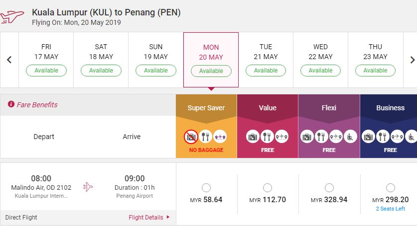 ▼从吉隆坡飞往槟城只需要RM58.64!