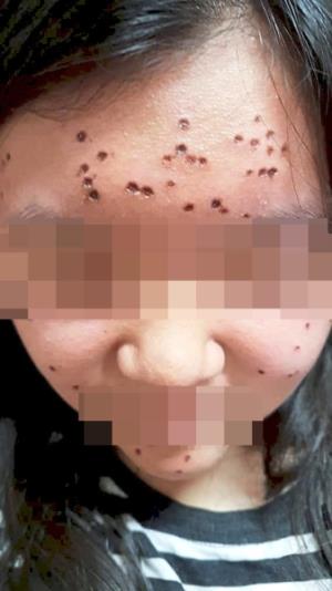 事情还没过去,最可怕的是在两天以后,女儿的脸上竟然长满了密密麻麻的黑洞!